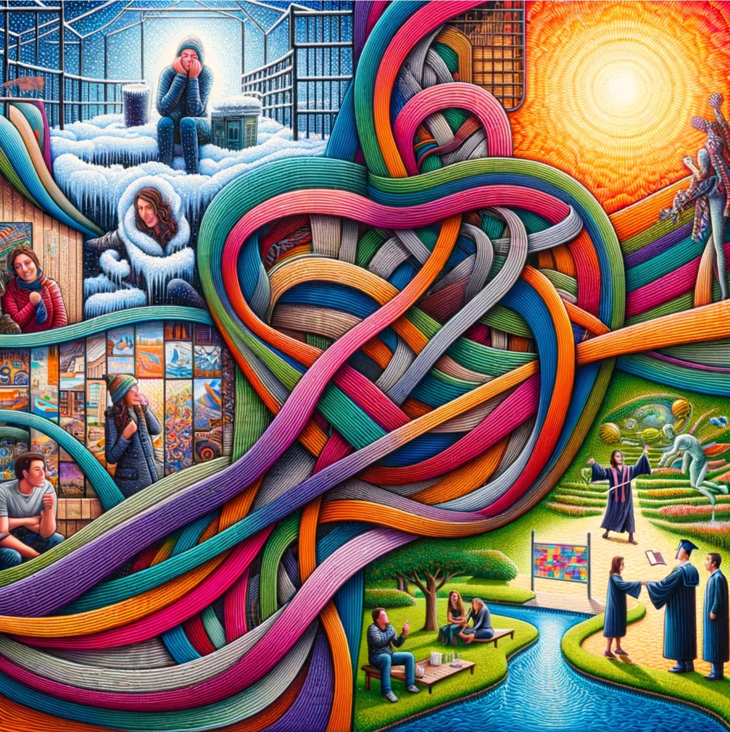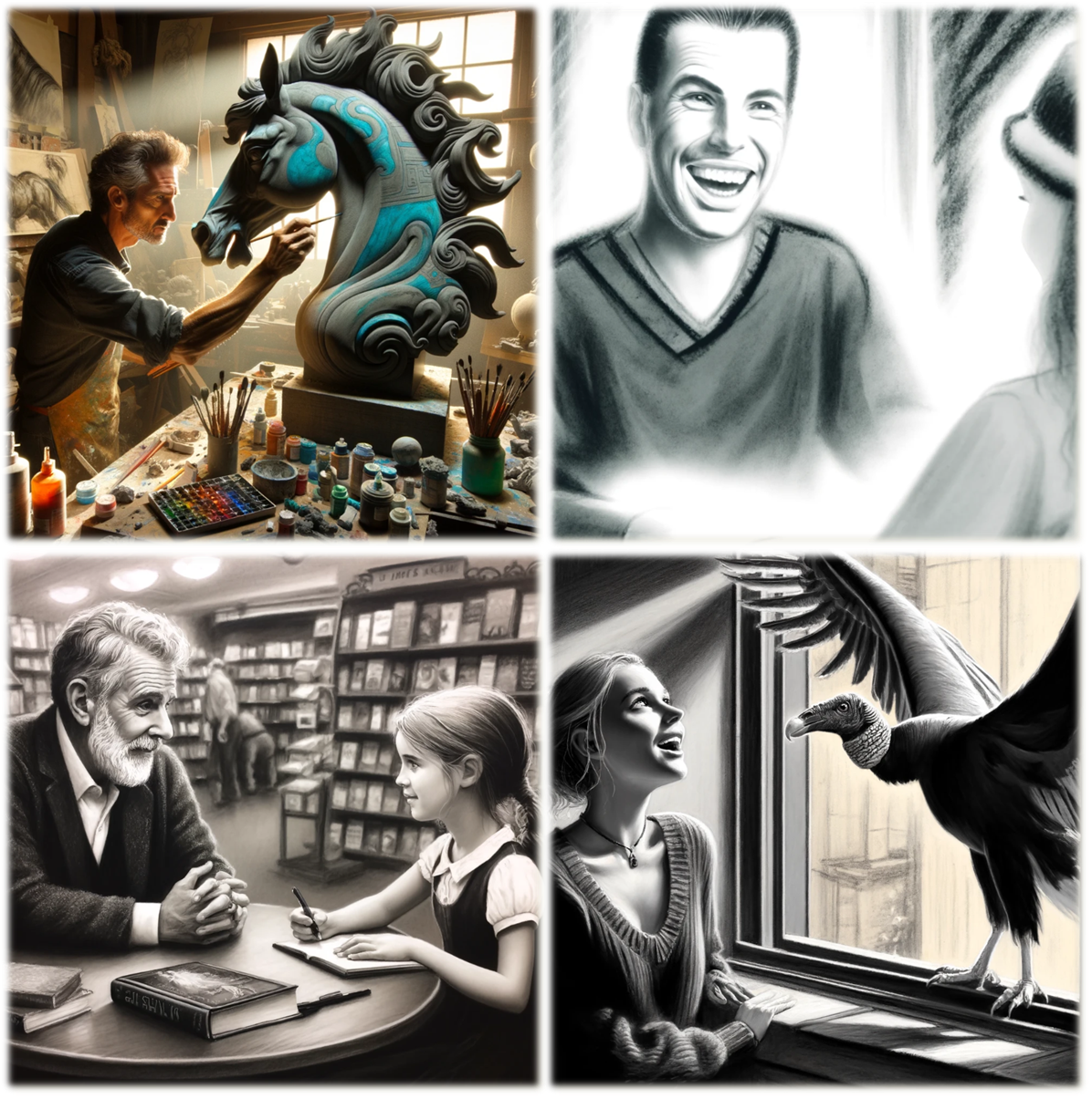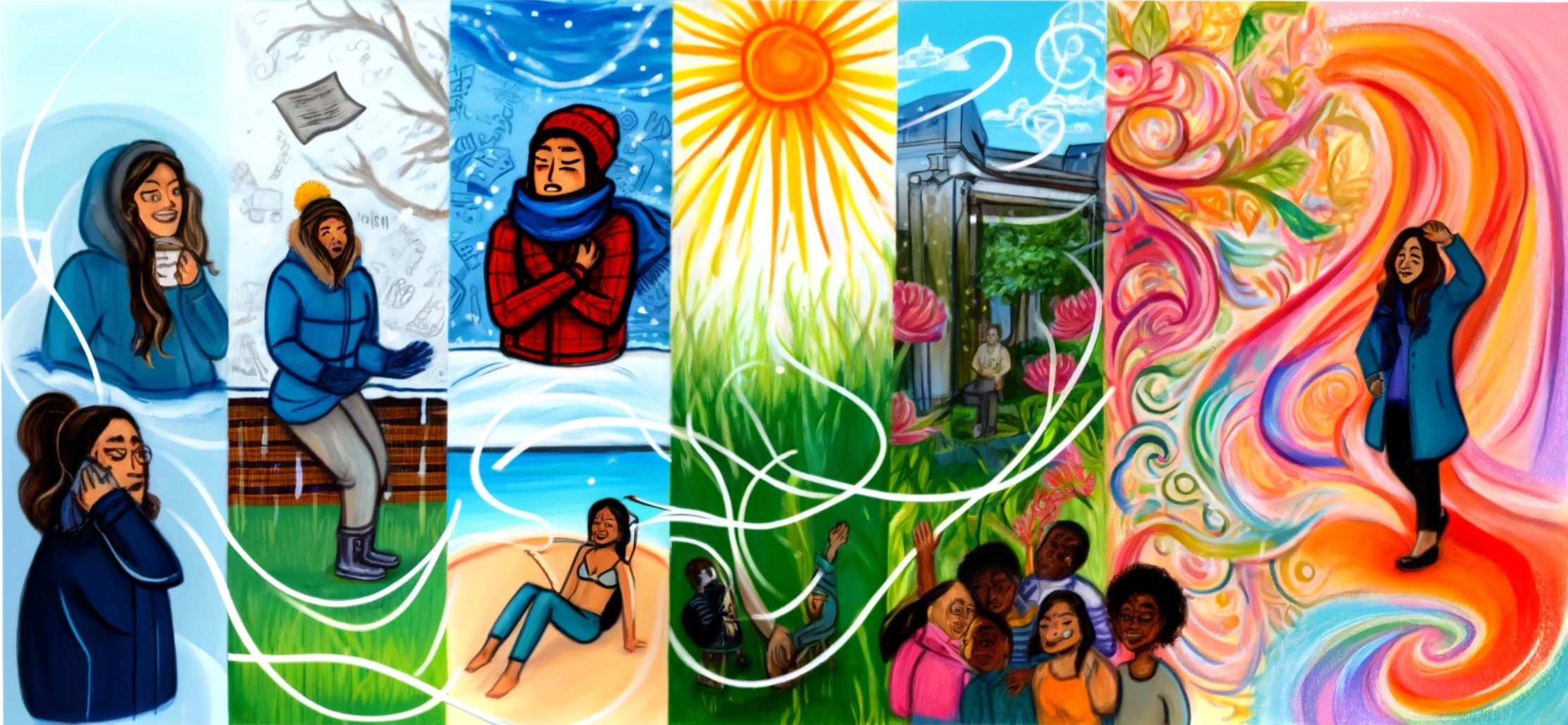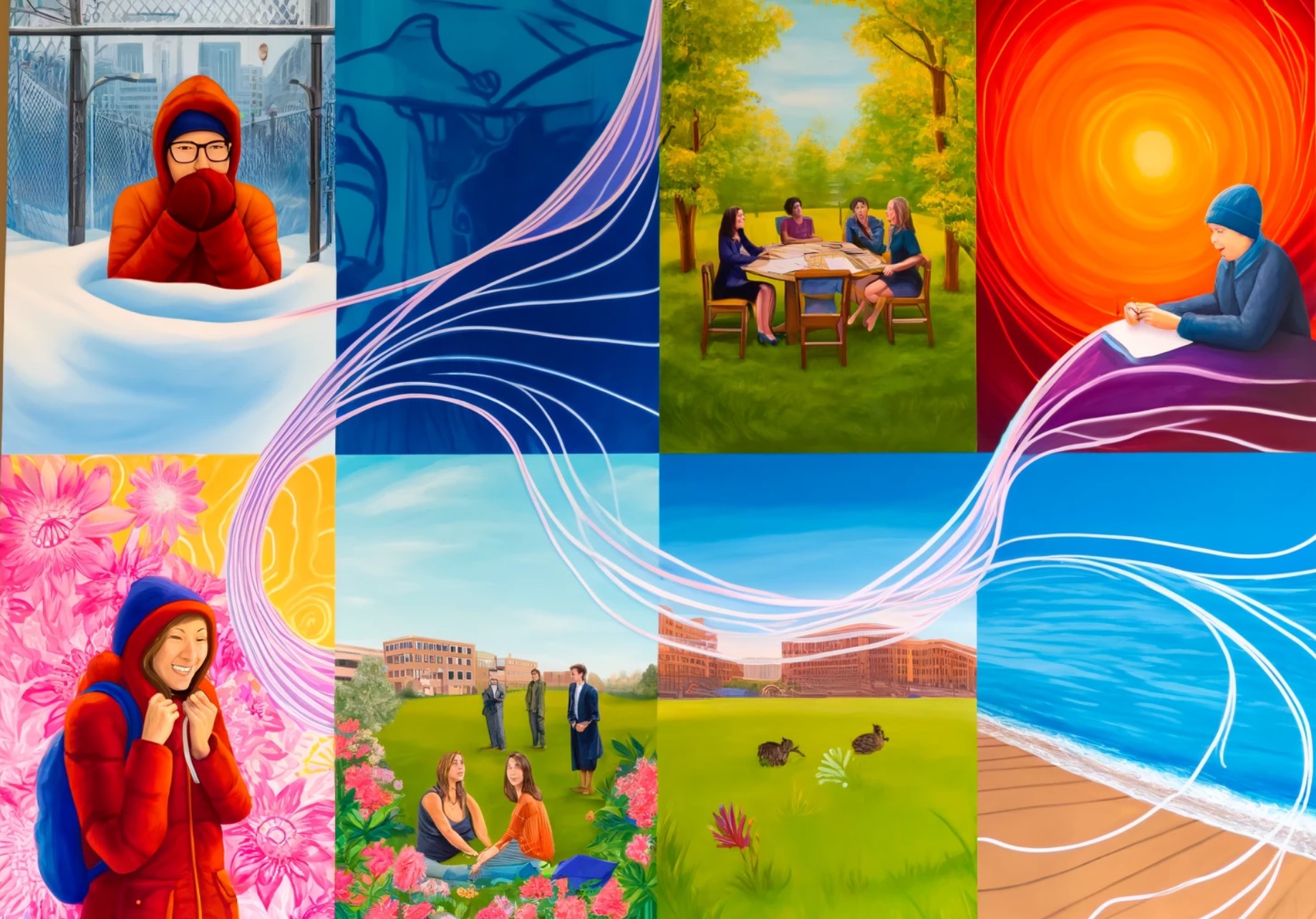 In the early days, we would transcribe the sessions and then use Generative AI to create artwork based on the experiences that people shared. While we are not continuing that process right now, you might enjoy looking at some of the work that was created in 2024.